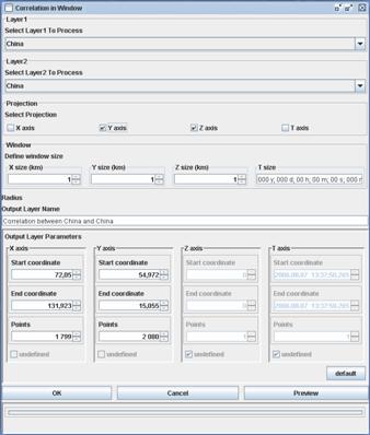 корреляции сеточных слоев в скользящем окне (опция Transform>Correlation in window)